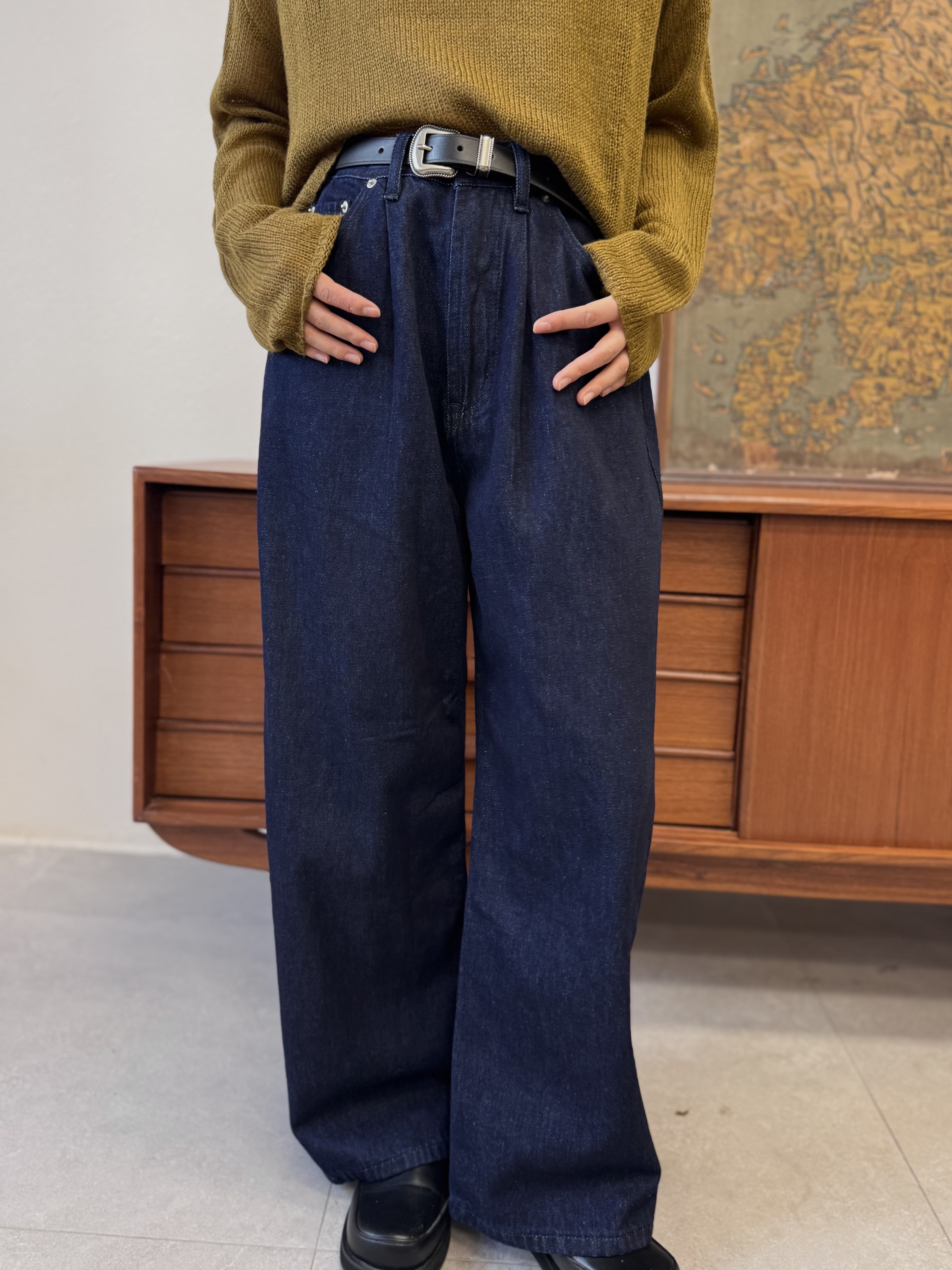 萬年穿~深藍色寬鬆牛仔褲 - TR52550