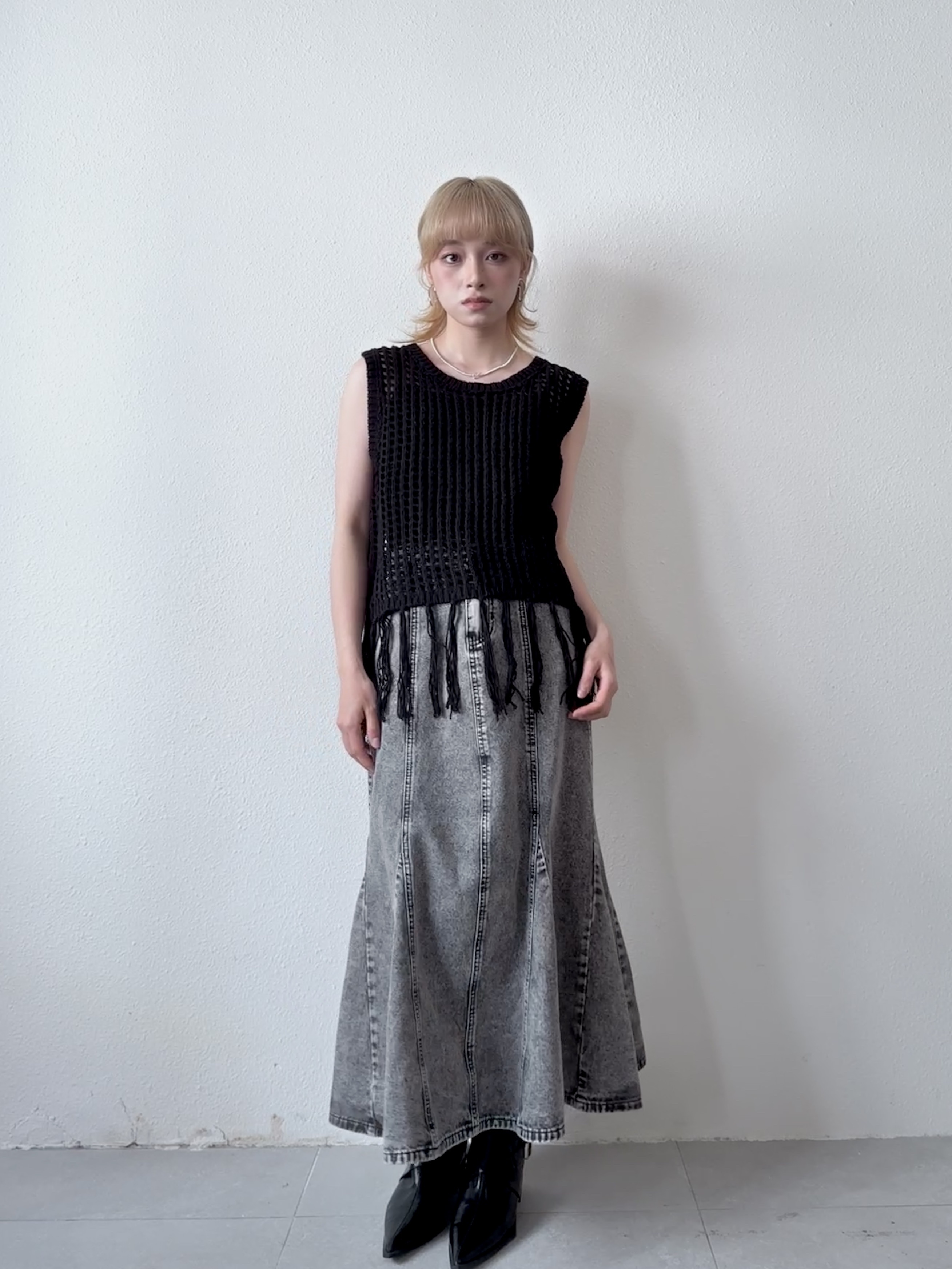 石磨洗水色牛仔魚尾裙 - SK9894