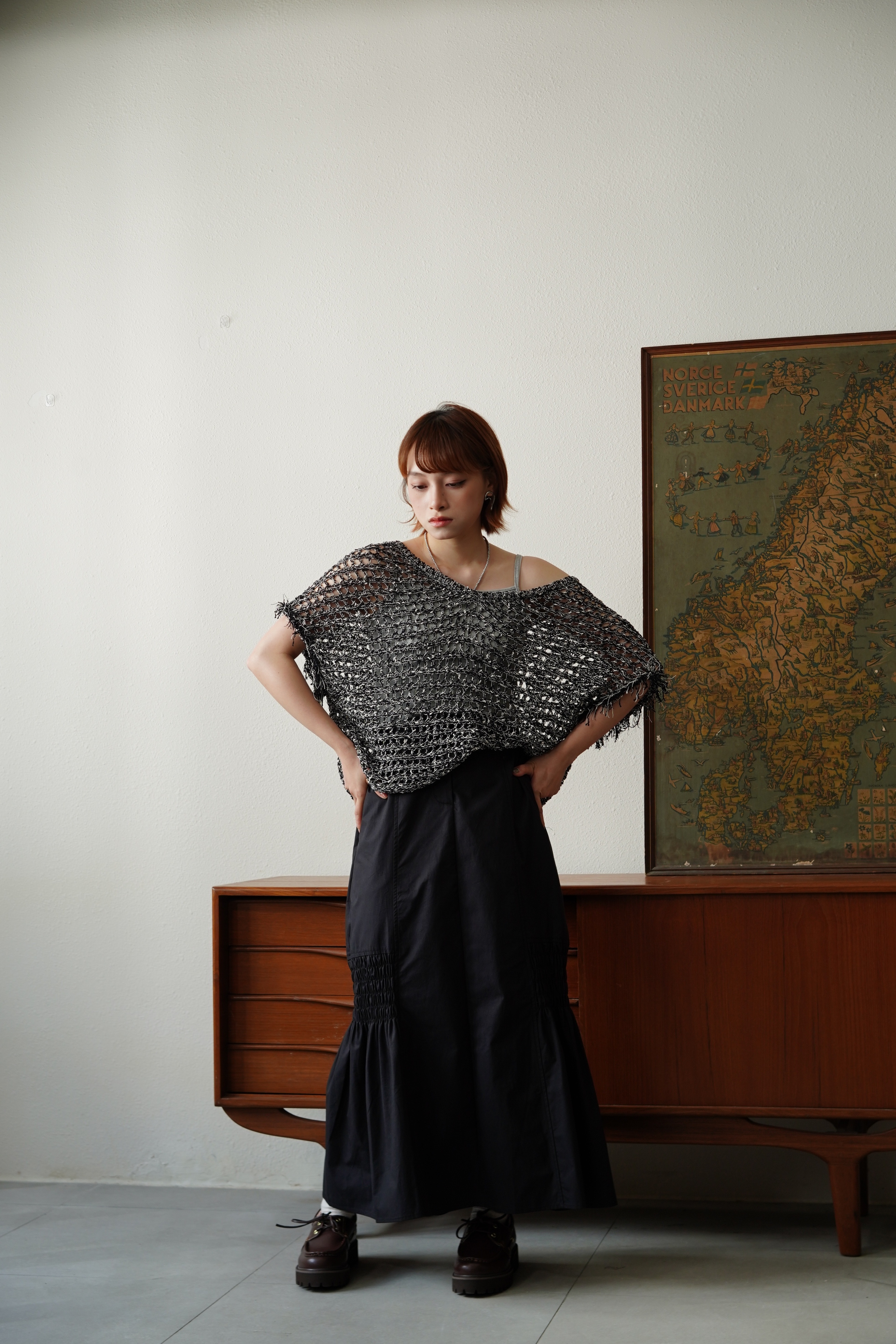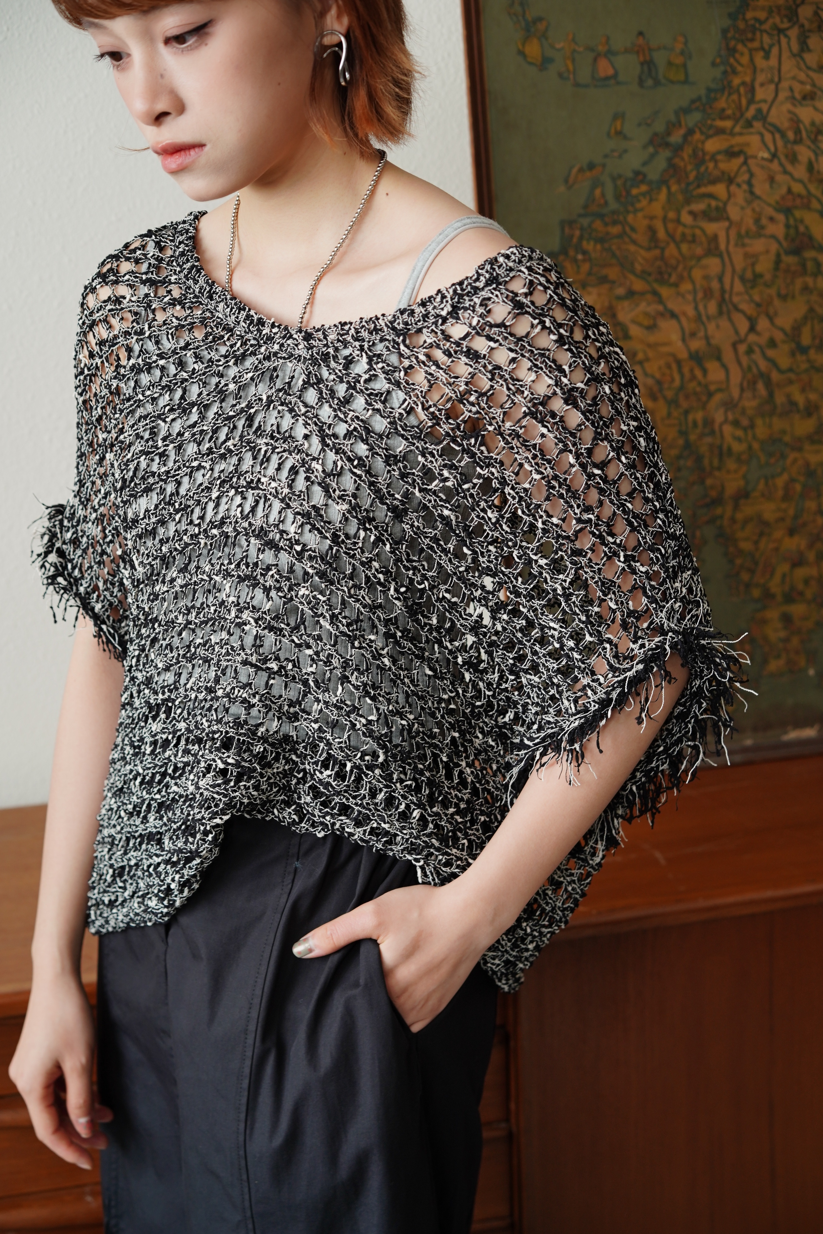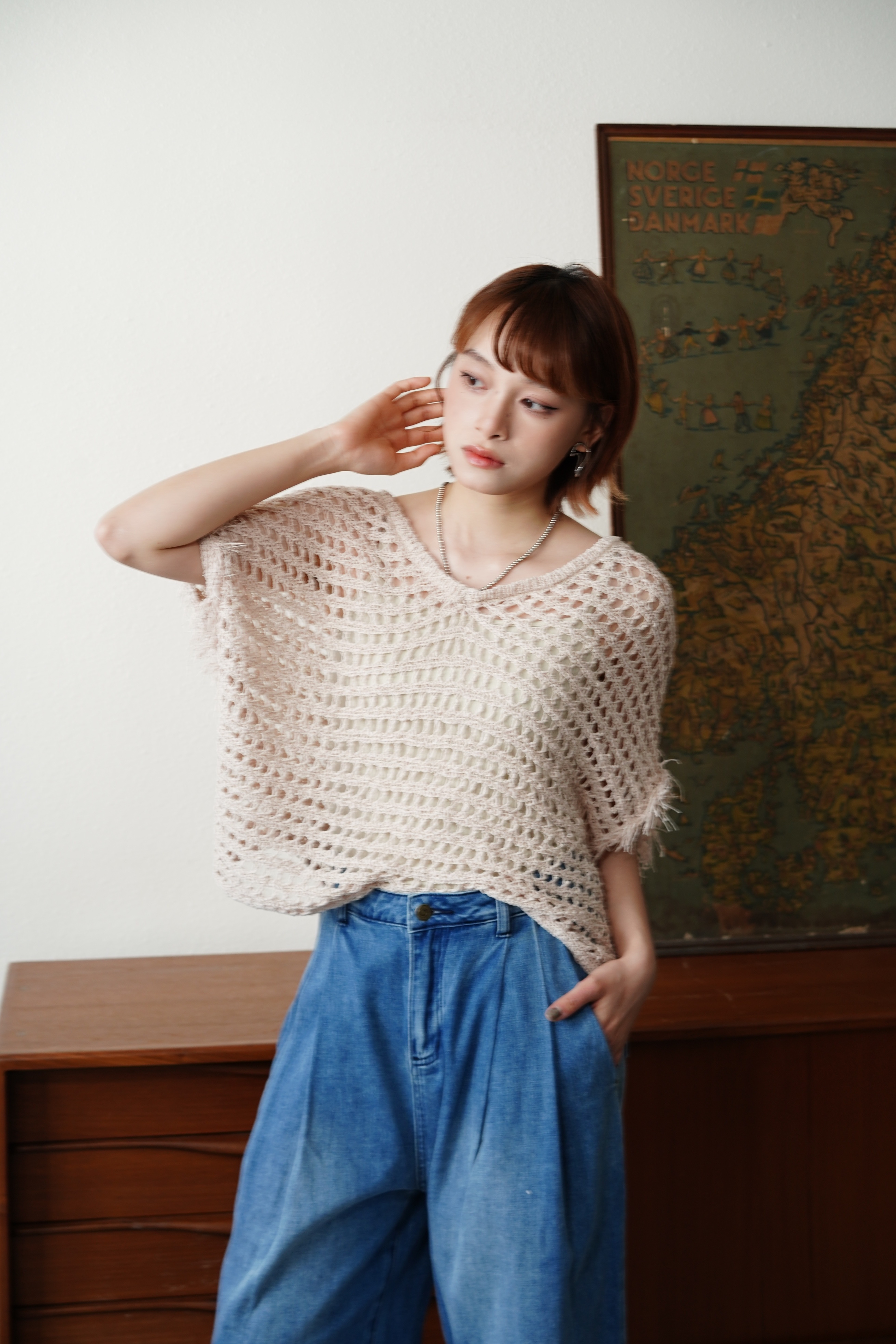 立體線纱V領流蘇針織上衣- SW62980